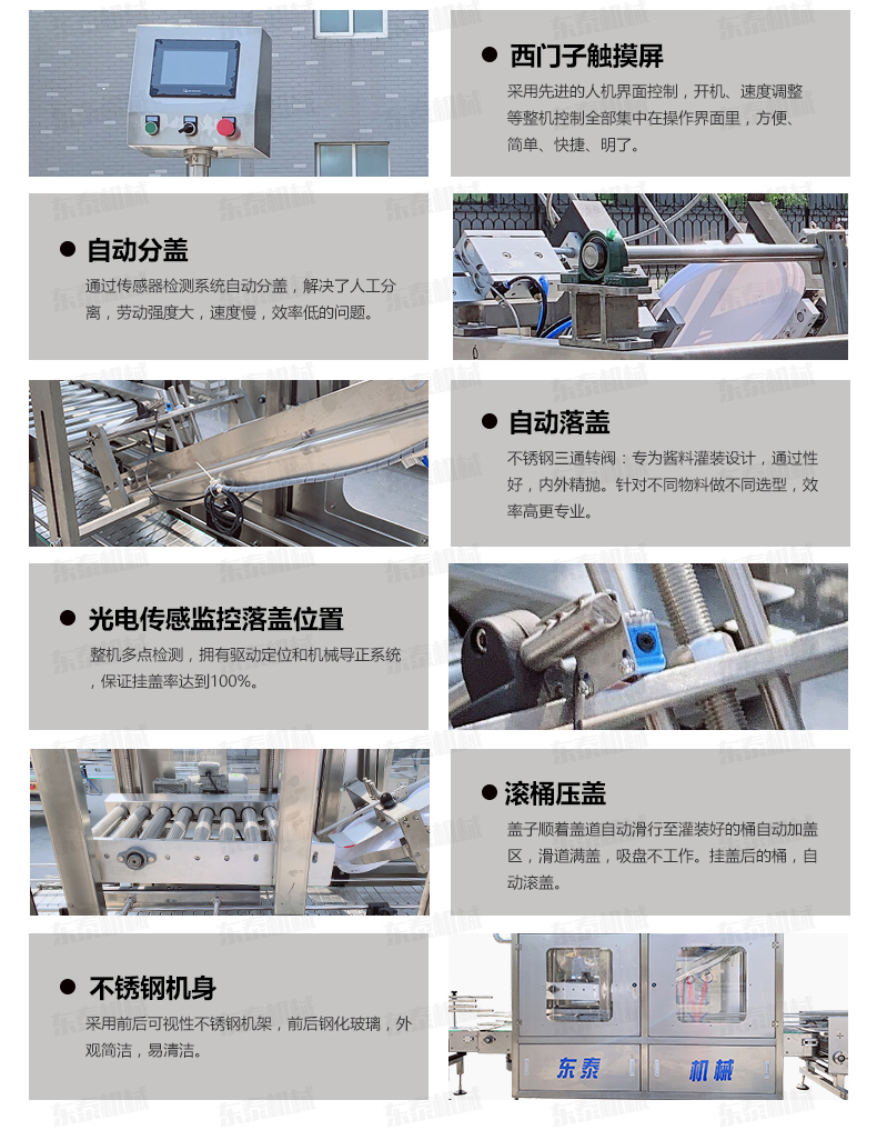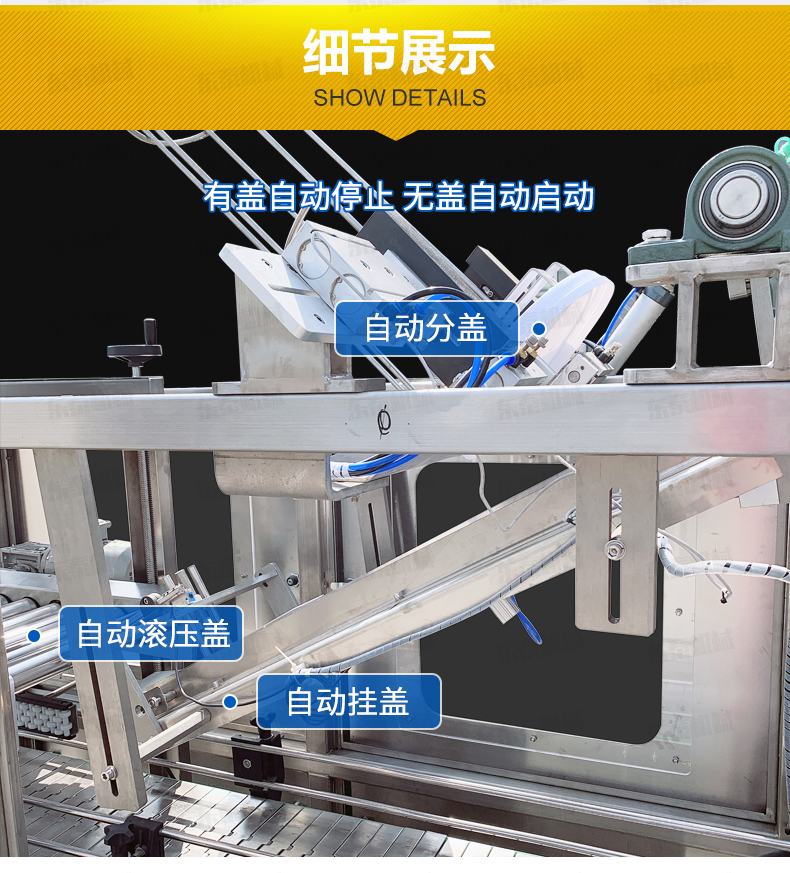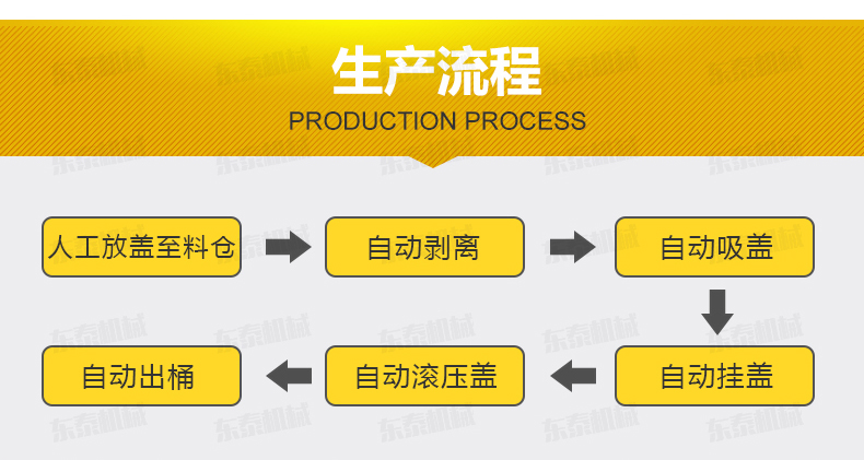 全自動(dòng)落蓋機(jī)操作流程 人工放蓋至料倉(cāng)——自動(dòng)剝離——自動(dòng)吸蓋——自動(dòng)掛蓋——自動(dòng)滾壓蓋&mdash
