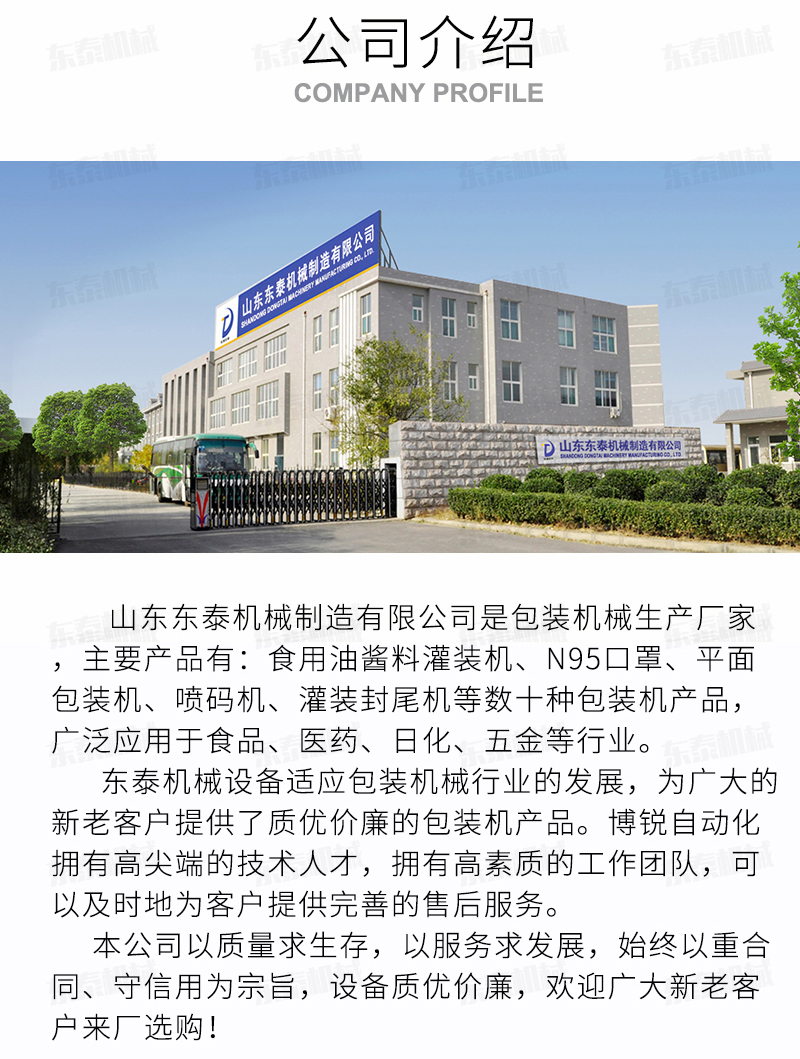 沈陽東泰機械隸屬于山東東泰機械,主營粉劑包裝機、醬類醬料包裝機、食用油灌裝機、食品包裝機、包裝流水線、灌裝生產(chǎn)線等產(chǎn)品,并且為東北地區(qū)客戶提供售后維修服務(wù)...