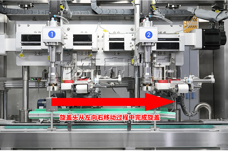FXG-2E型全自動(dòng)雙頭跟隨式旋蓋機(jī)由理蓋輸蓋機(jī)構(gòu)、抓蓋旋蓋機(jī)構(gòu)、運(yùn)動(dòng)模塊、 輸送機(jī)構(gòu)及控制系統(tǒng)組成。整機(jī)結(jié)構(gòu)簡單、調(diào)整方便。該設(shè)備為我司研制,產(chǎn)品在移動(dòng)過程中,完成旋蓋動(dòng)作。區(qū)別于常規(guī)
