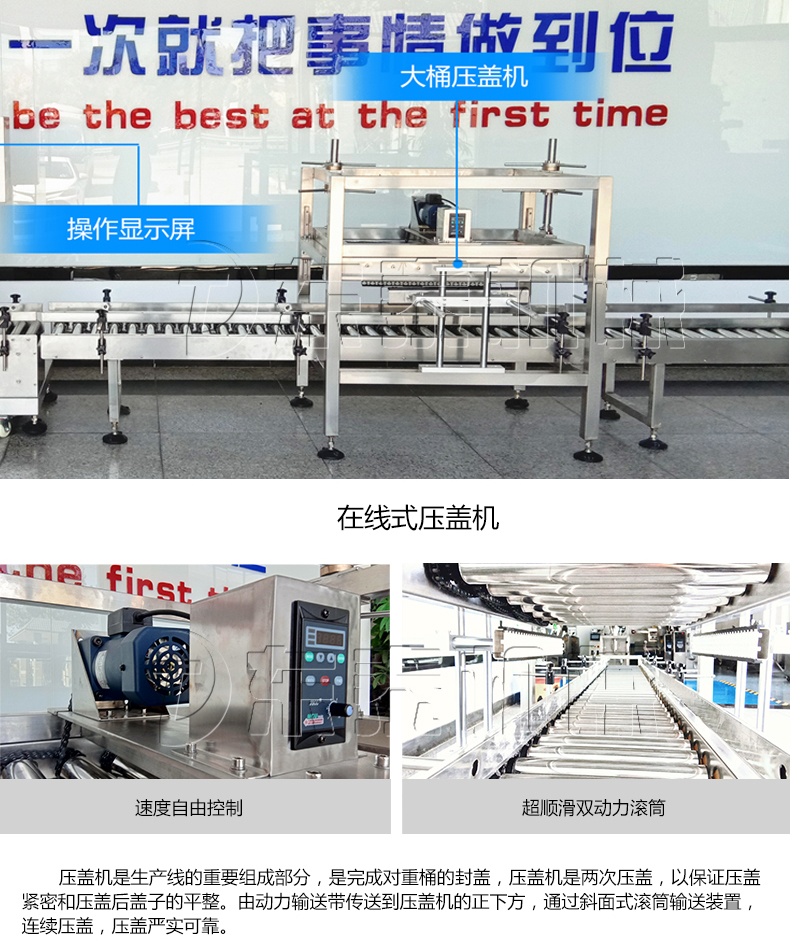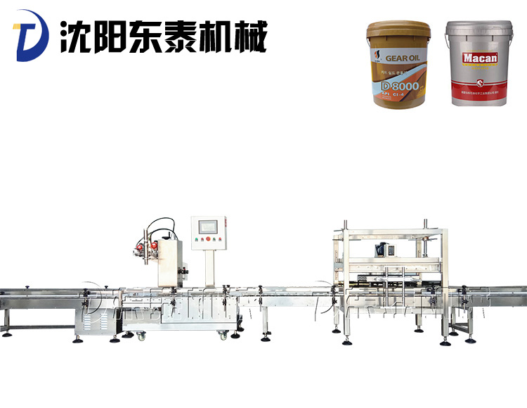稱重式灌裝封口生產(chǎn)線為半自動單頭稱重式灌裝機(jī)搭配在線式壓蓋機(jī),設(shè)備小巧、實(shí)用適合5-30KG敞口桶的灌裝(其它桶型可定制),灌裝時由人工放置空桶,并啟動開始按鈕,待灌裝完畢后放蓋并將桶推岀灌裝位置,動力滾筒自動傳送至壓蓋杋進(jìn)行壓蓋。壓蓋完畢后可輸送至成品輸送機(jī)上完成整個操作過程,全程僅需一人即可完成整個生產(chǎn)過程。此型號灌裝機(jī)為客戶大大降低了生產(chǎn)勞動成本,是大中小型液體灌裝企業(yè)的理想選擇。