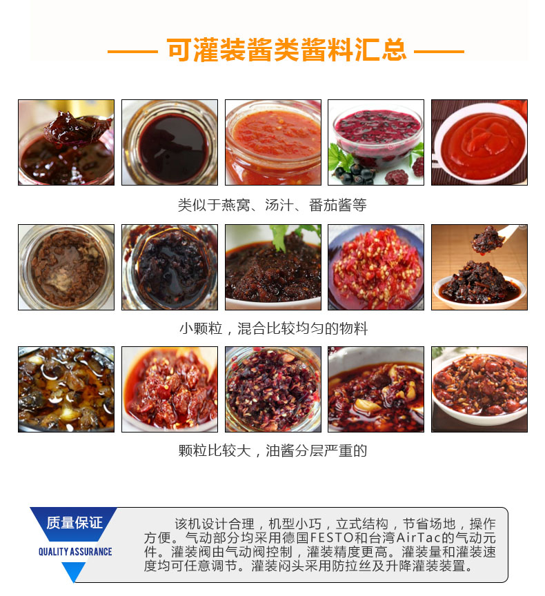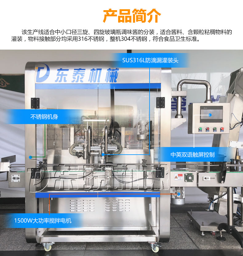 隨著機(jī)械技術(shù)的快速發(fā)展灌裝機(jī)的發(fā)展也是日新月異,使得其種類比較多。蘸醬在我國(guó)擁有悠久的歷史,在我國(guó)烹飪中占有著重要的地位,發(fā)展到現(xiàn)在在做菜和食品中也不可或缺,巨大的市場(chǎng)使得蘸醬灌裝機(jī)擁有巨大的市場(chǎng),醬類廠家在引進(jìn)設(shè)備時(shí)都想采購(gòu)到高效率、適合自己的蘸醬灌裝機(jī)械。人們對(duì)食品要求的提高使得醬類生產(chǎn)廠家迎來(lái)了較大的變格,安全衛(wèi)生是非常重要的標(biāo)準(zhǔn),因此對(duì)蘸醬灌裝機(jī)的選擇也更加的要求嚴(yán)格,許多傳統(tǒng)的機(jī)械已經(jīng)不能滿足企業(yè)高標(biāo)準(zhǔn)、高效率的要求。因此選擇一款適合的蘸醬灌裝機(jī)械產(chǎn)品顯得尤為重要。